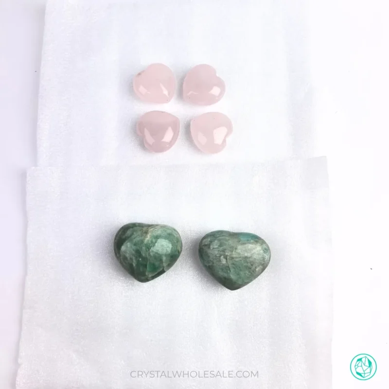 Each crystal heart is wrapped separately in protective foam to help reduce scratches, chipping, and surface friction.