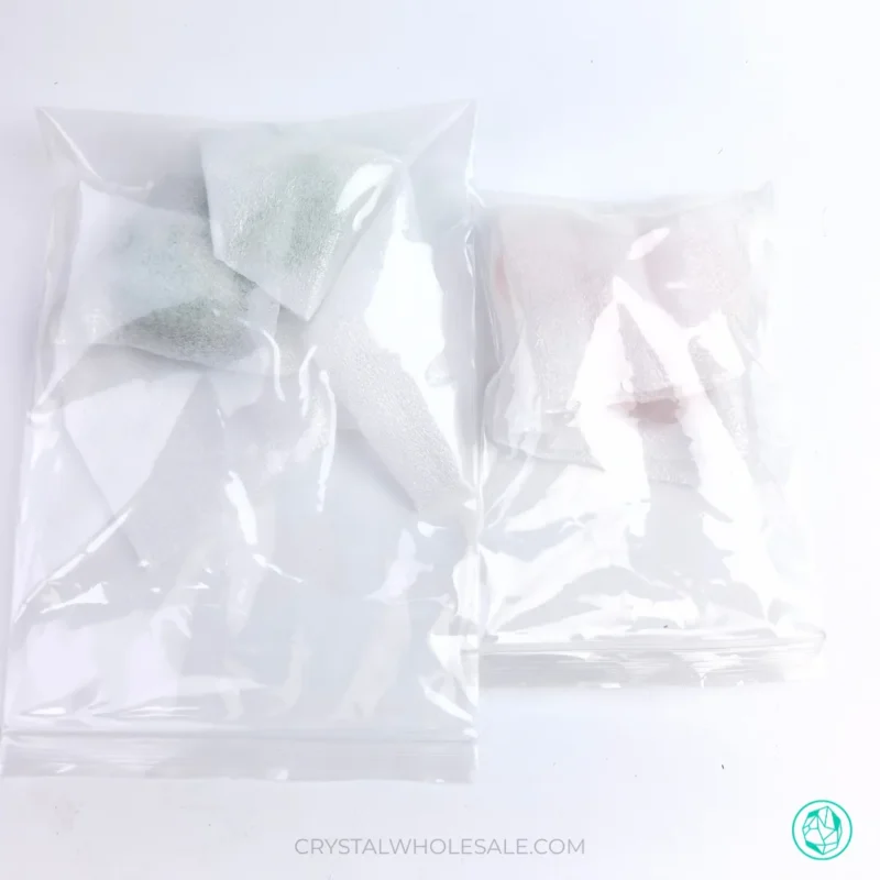 The foam-wrapped crystal hearts are packed into clear inner bags by batch for cleaner sorting and added handling protection.