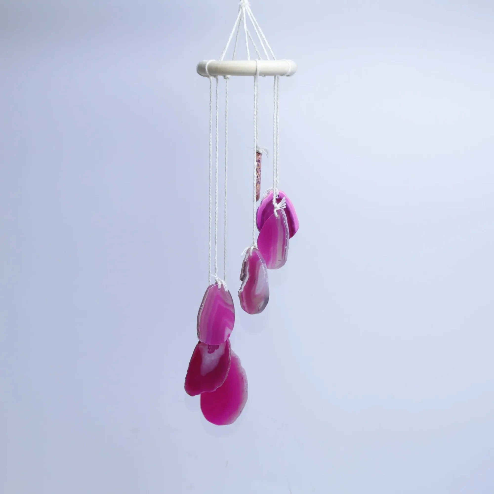 3-Color Natural Agate Slice Wind Chimes 13.8 in (7 Slices per Chime)