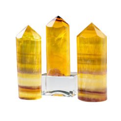 3 Sizes of Natural Yellow Fluorite Round Crystal Tower / Pillar Wholesale
