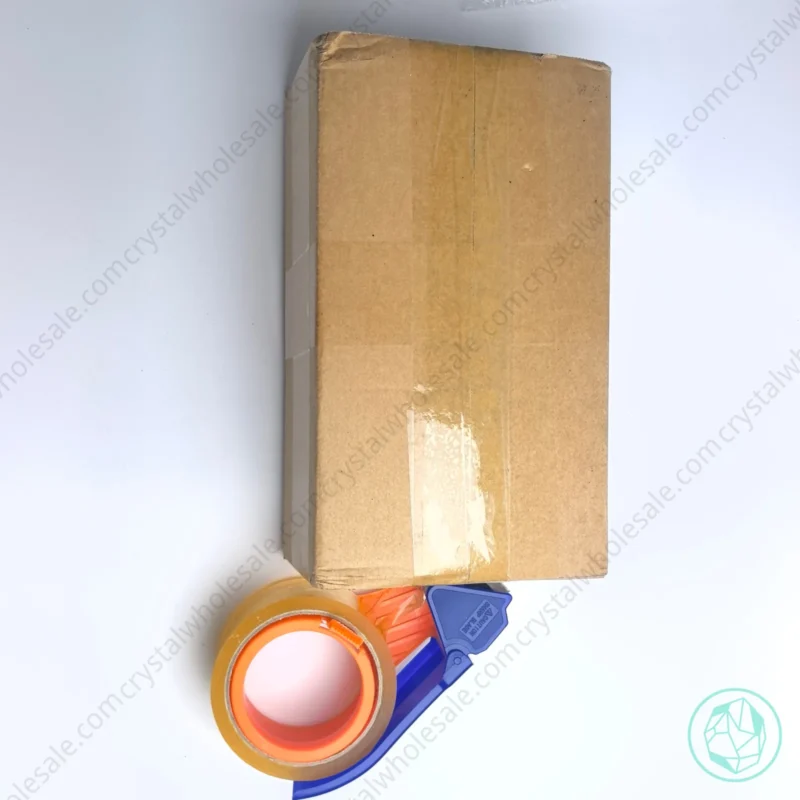 The carton is sealed securely with packing tape for shipment.