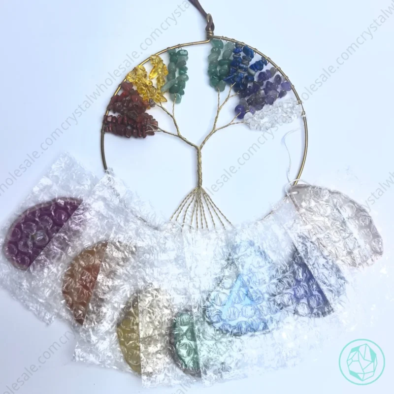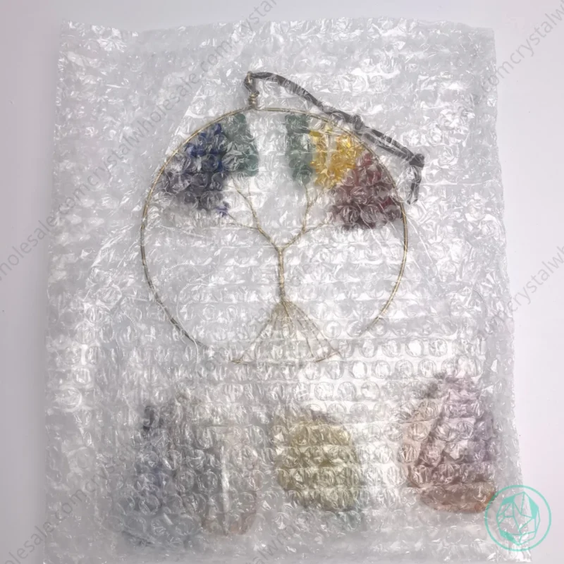 Each crystal slice or fragile stone component is wrapped individually with bubble wrap.
